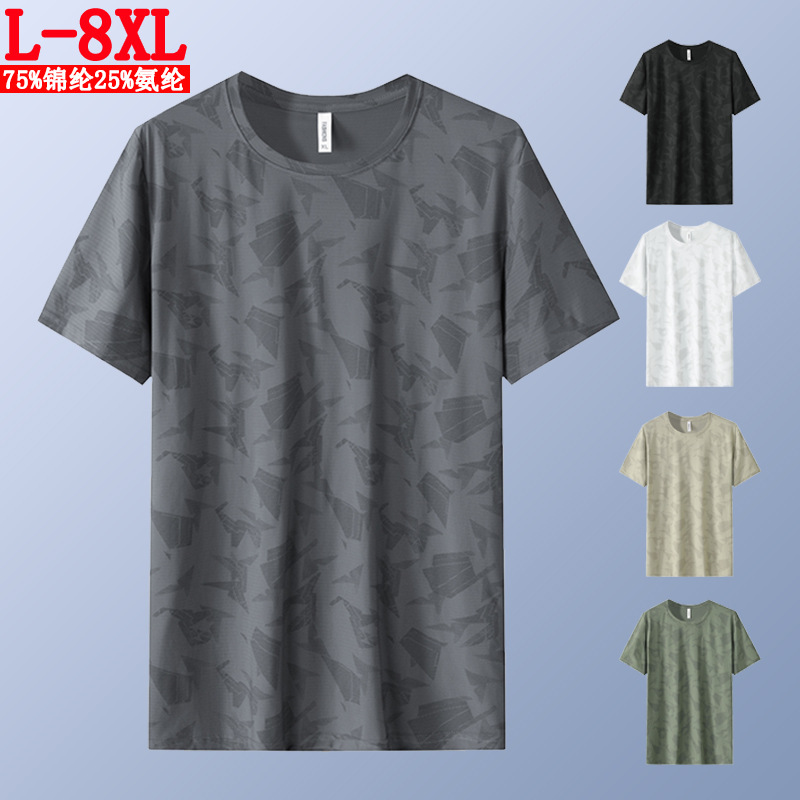 Kaus lengan pendek ukuran besar pria, kaos atasan longgar kamuflase sutra es tipis cepat kering musim panas