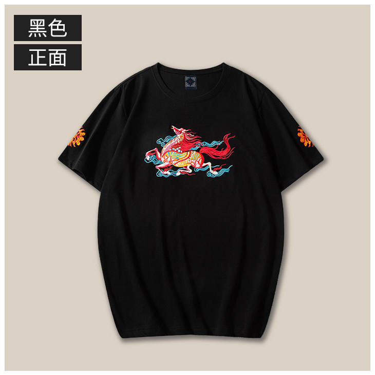 Kaos pria katun murni bordir lengan pendek, ukuran besar, gaya Cina, kemeja pasangan kasual longgar musim panas, gaya nasional trendi.