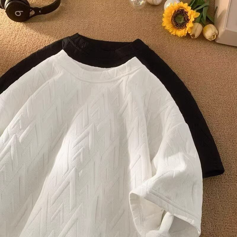 Kaus Lengan Pendek Warna Putih Kaus Lengan Setengah Kerah Bulat Pria Ukuran Besar Merek Trendi Pakaian Berat Model Baru 2025 Musim Panas Pria