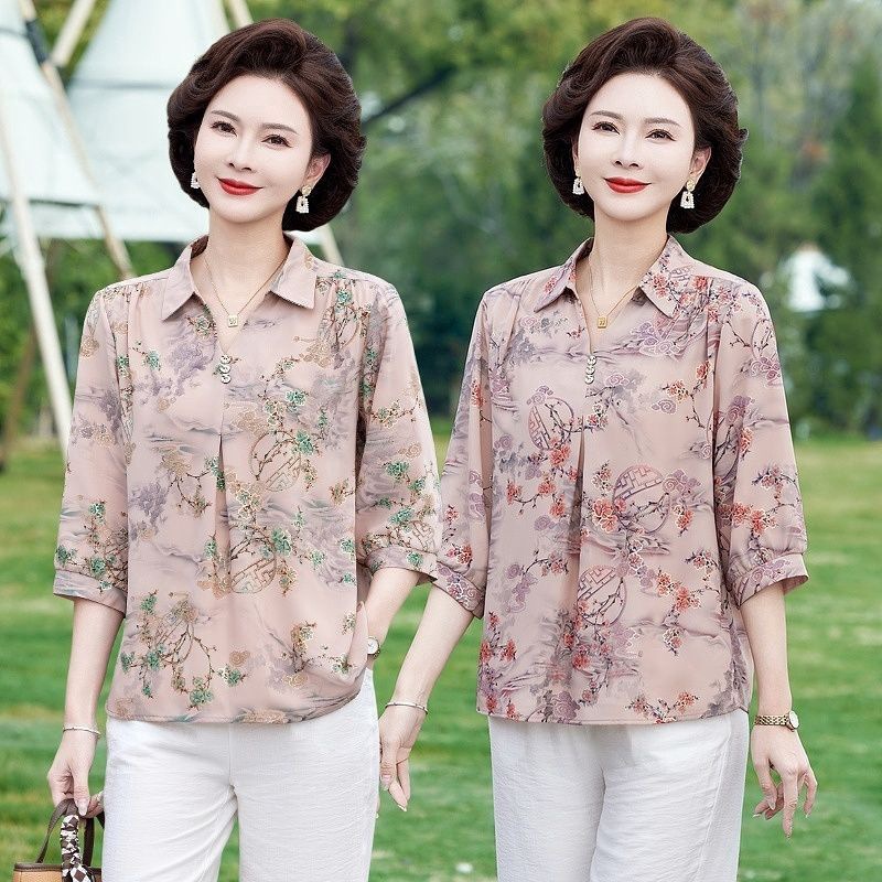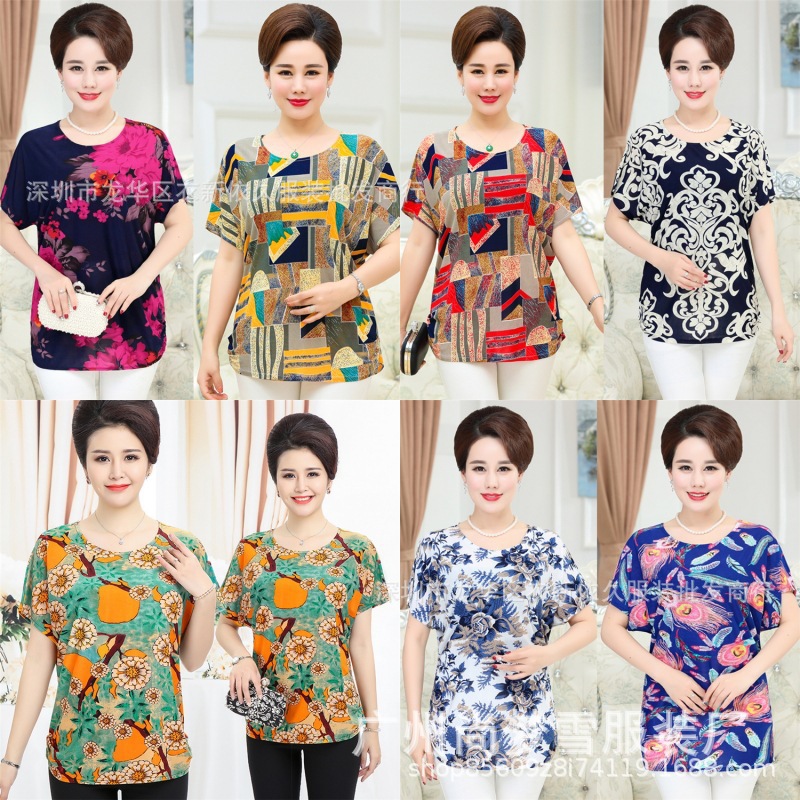 Pakaian Ibu Musim Panas Pakaian Wanita Setengah Baya dan Tua T-shirt Pakaian Wanita