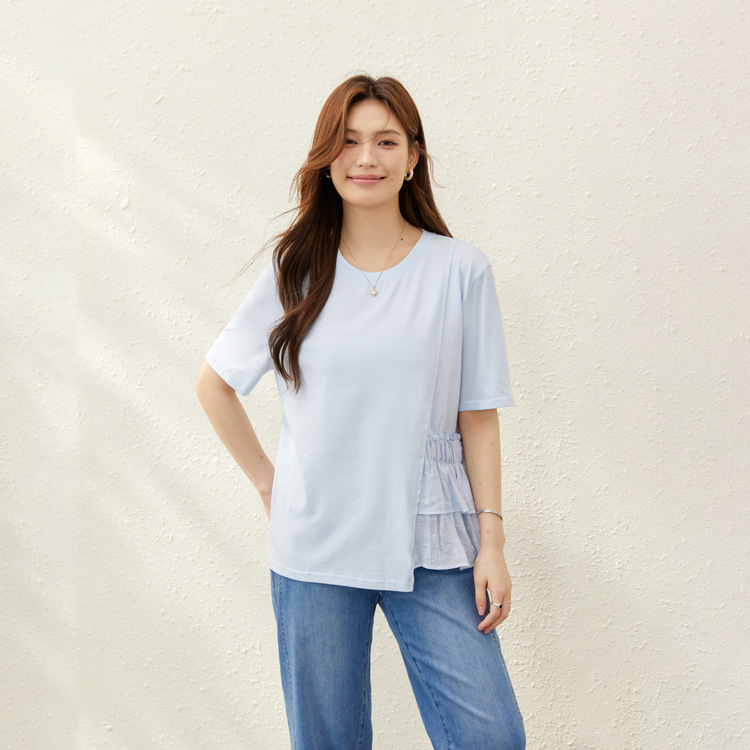 [T-Shirt Mudah Dipadu Padan Gaya Barat dengan Side Desain] Pakaian Wanita Berlemak Ukuran Besar Pakaian Musim Panas Model Baru