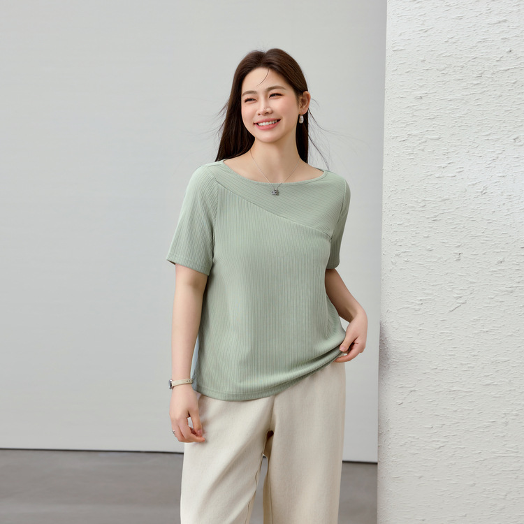 [T-Shirt Mudah Dipadu Padan dengan Tekstur Modis Kerah Desain] Pakaian Wanita Ukuran Besar