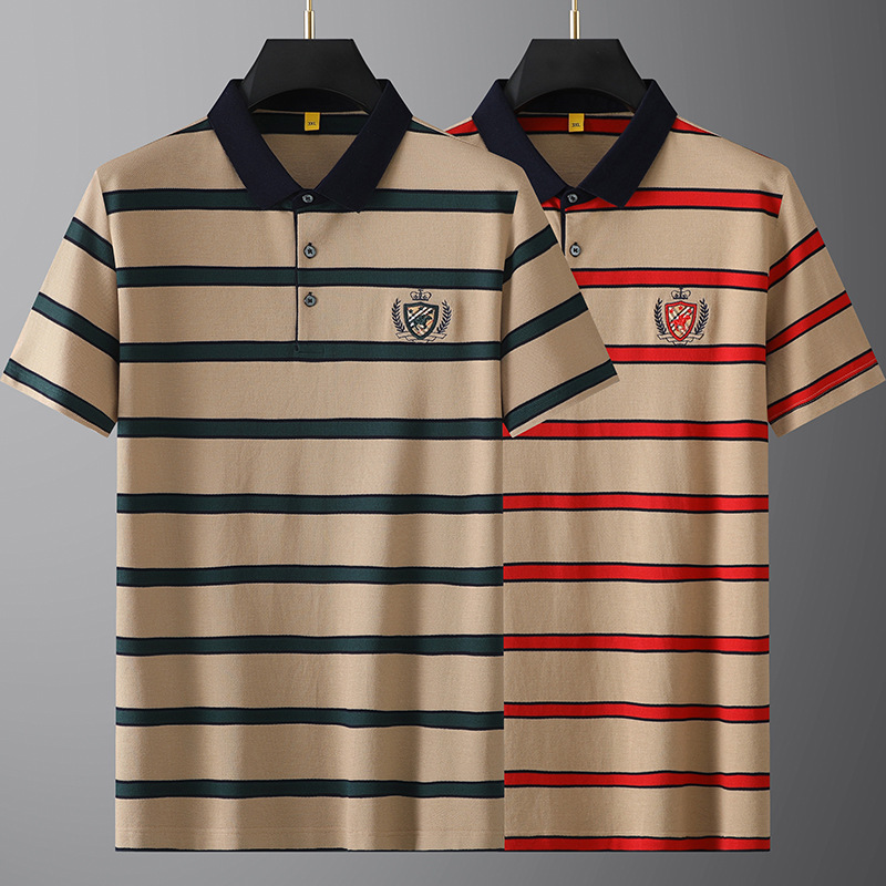2024 pria baru musim panas ukuran besar bisnis kasual lapel bergaris lengan pendek t-shirt satu potong pengiriman