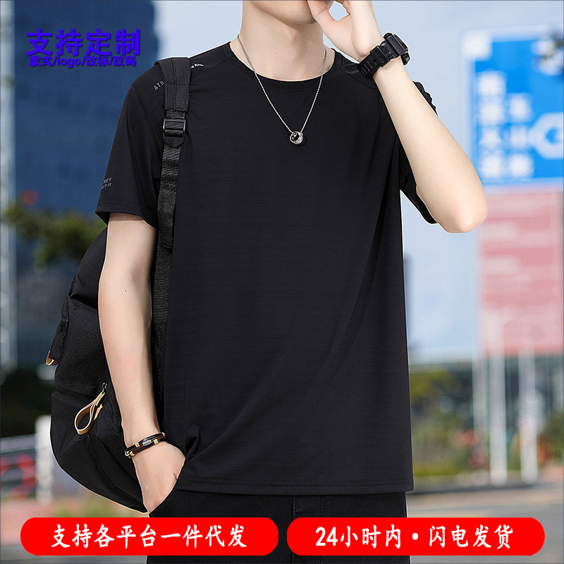 Kaos Lengan Pendek Pria Jaring Sutra Es Pabrik Sumber Pakaian Pria Ukuran Besar Model Tipis Cepat Kering Lengan Setengah Musim Panas Kasual Olahraga