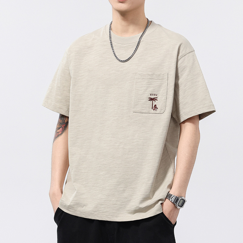 Kaus Lengan Pendek Katun Bambu Atasan Lengan Setengah Kerah Bulat Merek Trendi Model Baru Musim Panas Pria Kaus Santai Ukuran Besar Longgar Pria