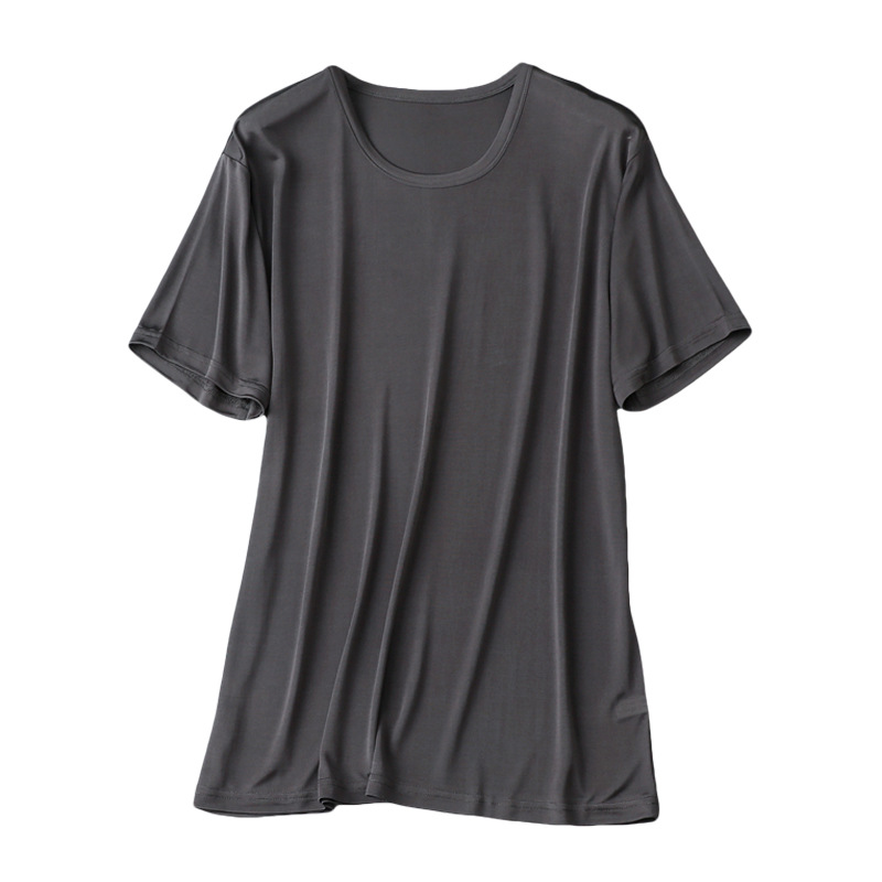 Kaus katun lengan pendek pria dengan perasaan es pakaian longgar musim panas trendi warna solid anak laki-laki setengah lengan ukuran besar pakaian pria