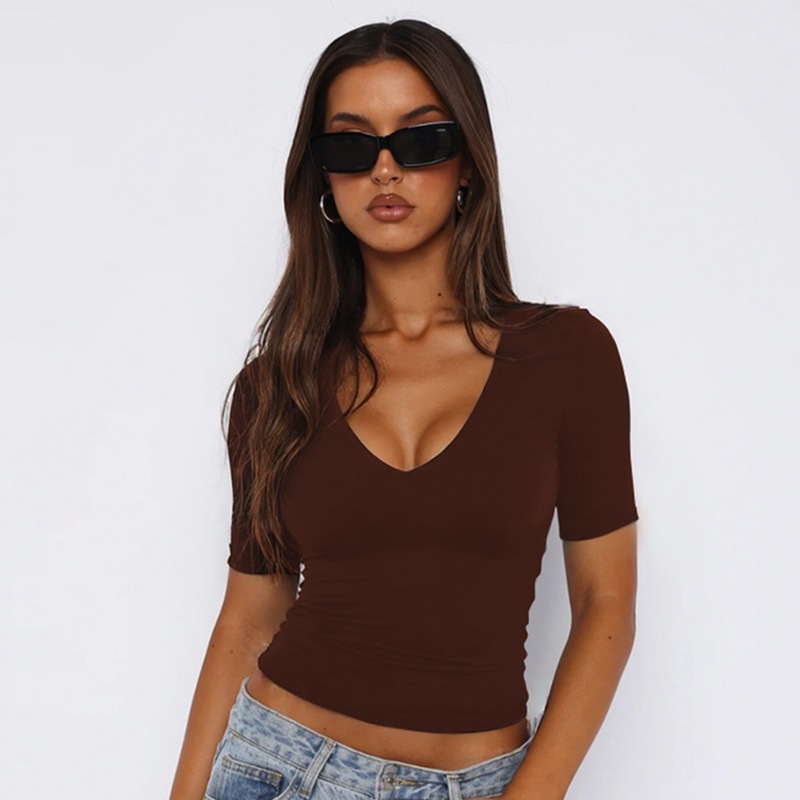 Pakaian Wanita Gaya Eropa dan Amerika Model Baru Musim Panas 2025 Atasan T-shirt Terlihat Langsing Membentuk Tubuh Lengan Lima Perempat Kerah Huruf U Warna Polos Grosir Perdagangan Luar Negeri