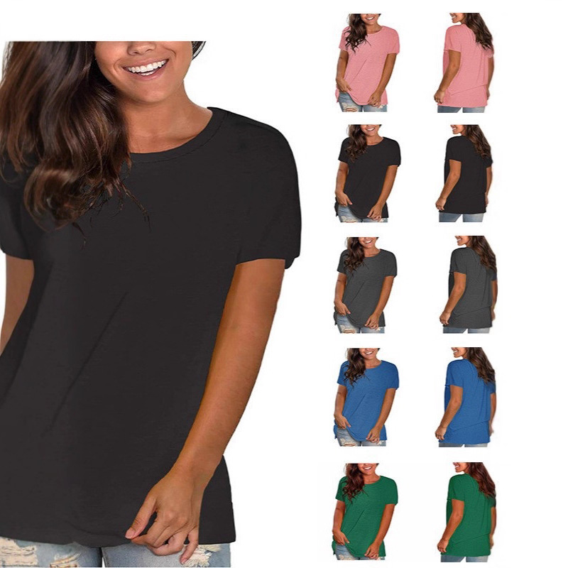Atasan Kaos Wanita Lengan Pendek Warna Solid Pullover Kerah O Ukuran Besar