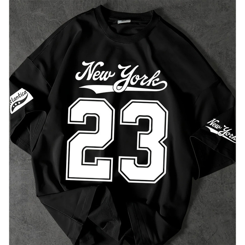 T-shirt Musim Panas Lengan Pendek Gaya Amerika Retro Pria dan Wanita Olahraga Santai Kombinasi Digital Bola Basket Hip Hop Longgar Cepat Kering