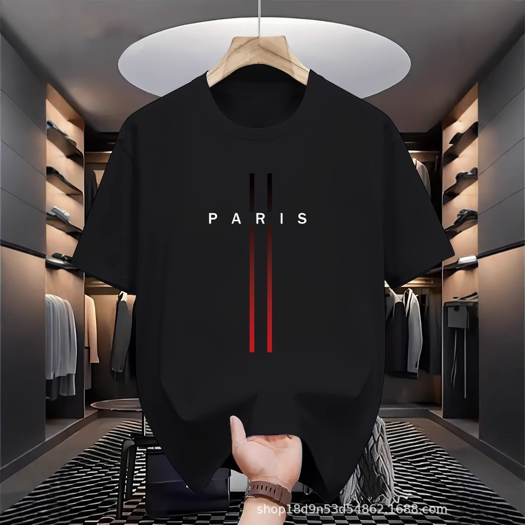 Kaos Oblong Barang Tersedia Lengan Pendek Model Pria Eropa dan Amerika Model Baru Bercorak T-shirt Lengan Pendek Ukuran Besar Kerah Bulat Musim Panas Perdagangan Luar Negeri