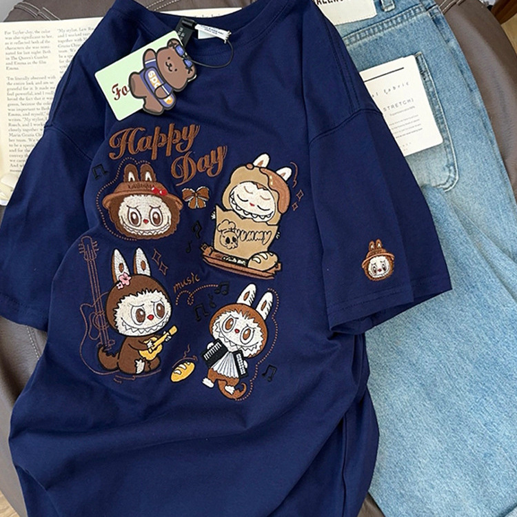 Kaus Lengan Pendek Katun Snowflake Longgar Anak Anjing Kartun Lucu Korea Dongdaemun Atasan Musim Panas Wanita Versi Besar