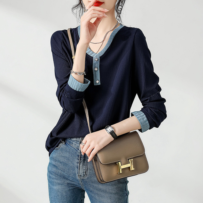 Amazon eBay kaus lengan panjang wanita berlipat kancing leher-v baru musim gugur dan musim dingin perdagangan luar negeri Eropa dan Amerika 2023 kaos ukuran plus