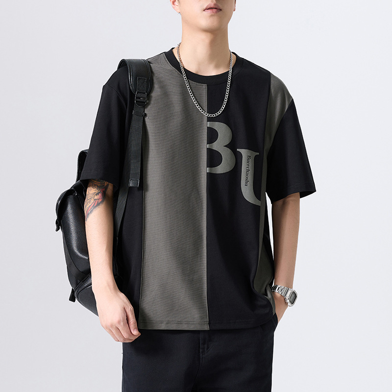 T-Shirt Lengan Pendek Ukuran Besar Longgar Model Baru 2025 T-Shirt Lengan Setengah Gaya Desain Gaya Amerika dengan Warna Kontras Berat Kasual Musim Panas Pria