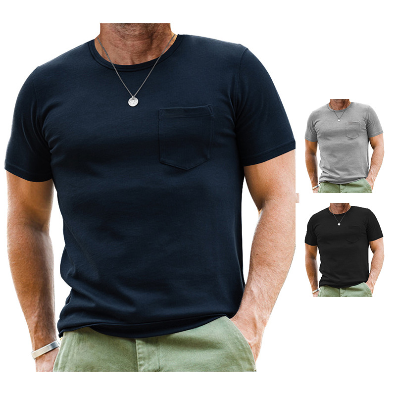 2024 Eropa Amerika Cross-Border Musim Panas Pria Lengan Pendek Ukuran Besar Warna Solid Kantong Kancing Lengan Pendek T-Shirt Kerah Henry