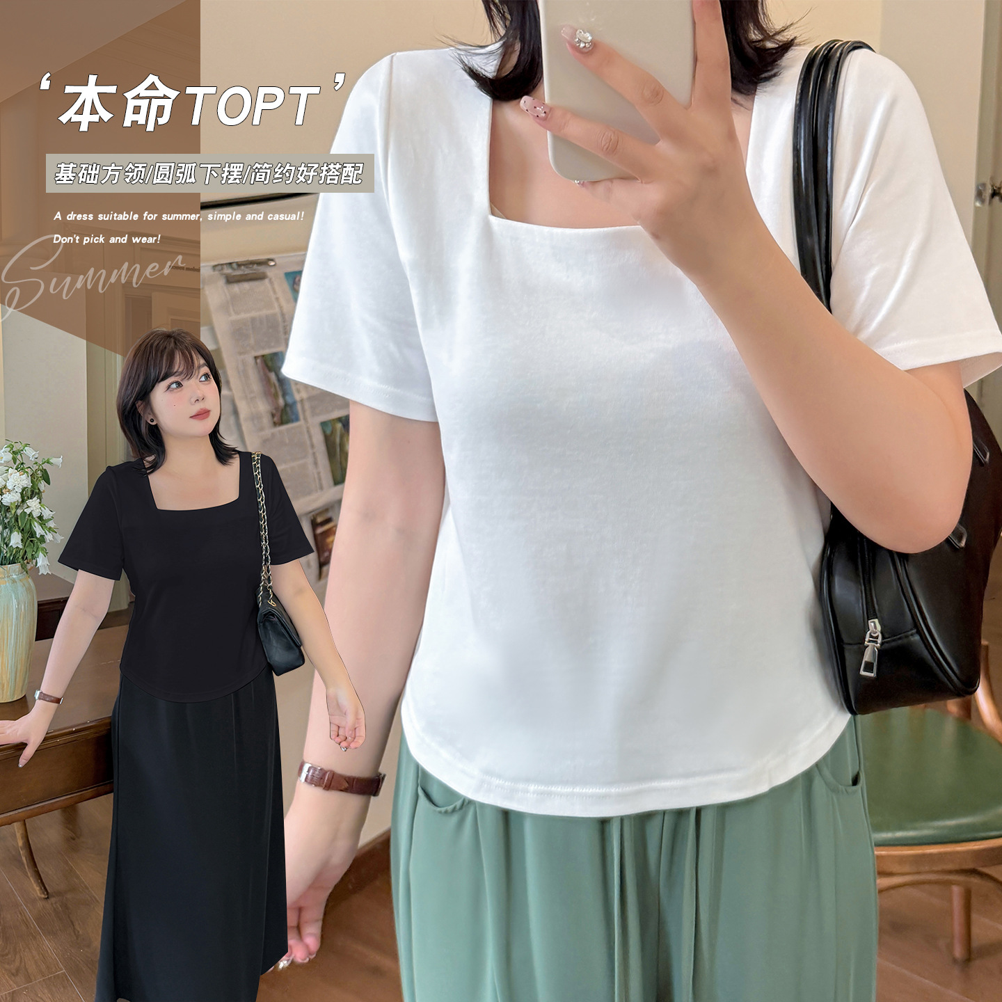 W1324 Musim Panas Produk Baru Kerah Persegi Ukuran Besar Lengan Pendek Dada Lengan Setengah Pendek Mudah Dipadu Padan Gaya Korea Musim Panas Wanita
