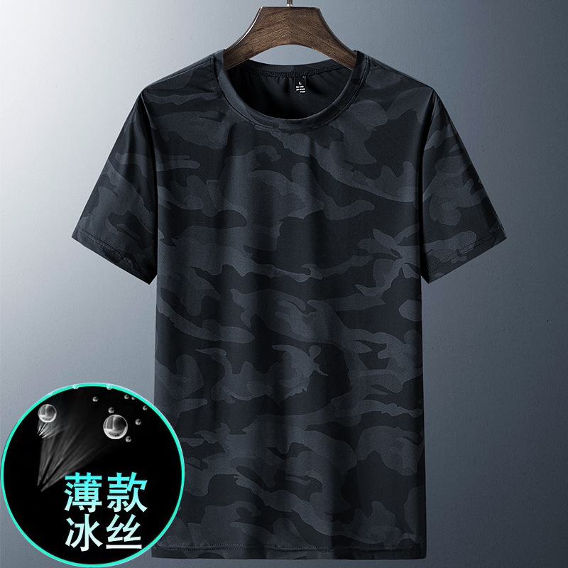 Kaos Lengan Pendek Pria Jaring Sutra Es Pabrik Sumber Pakaian Pria Ukuran Besar Model Tipis Cepat Kering Lengan Setengah Musim Panas Kasual Olahraga