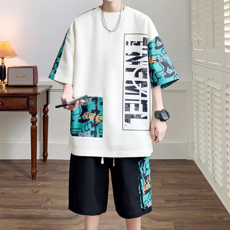 Kaus pria lengan pendek, Kaus katun pria musim panas, ukuran plus, lengan setengah, gaya China longgar, merek fashion ins, Kaus musim panas pria