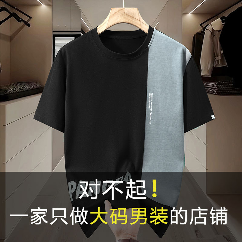 Kaos Lengan Pendek Pakaian Pria Ukuran Besar 360g Tambah Lemak Tambah Besar Santai Santai Trendi Longgar Bercorak Pria Gemuk Lengan Setengah Musim Panas