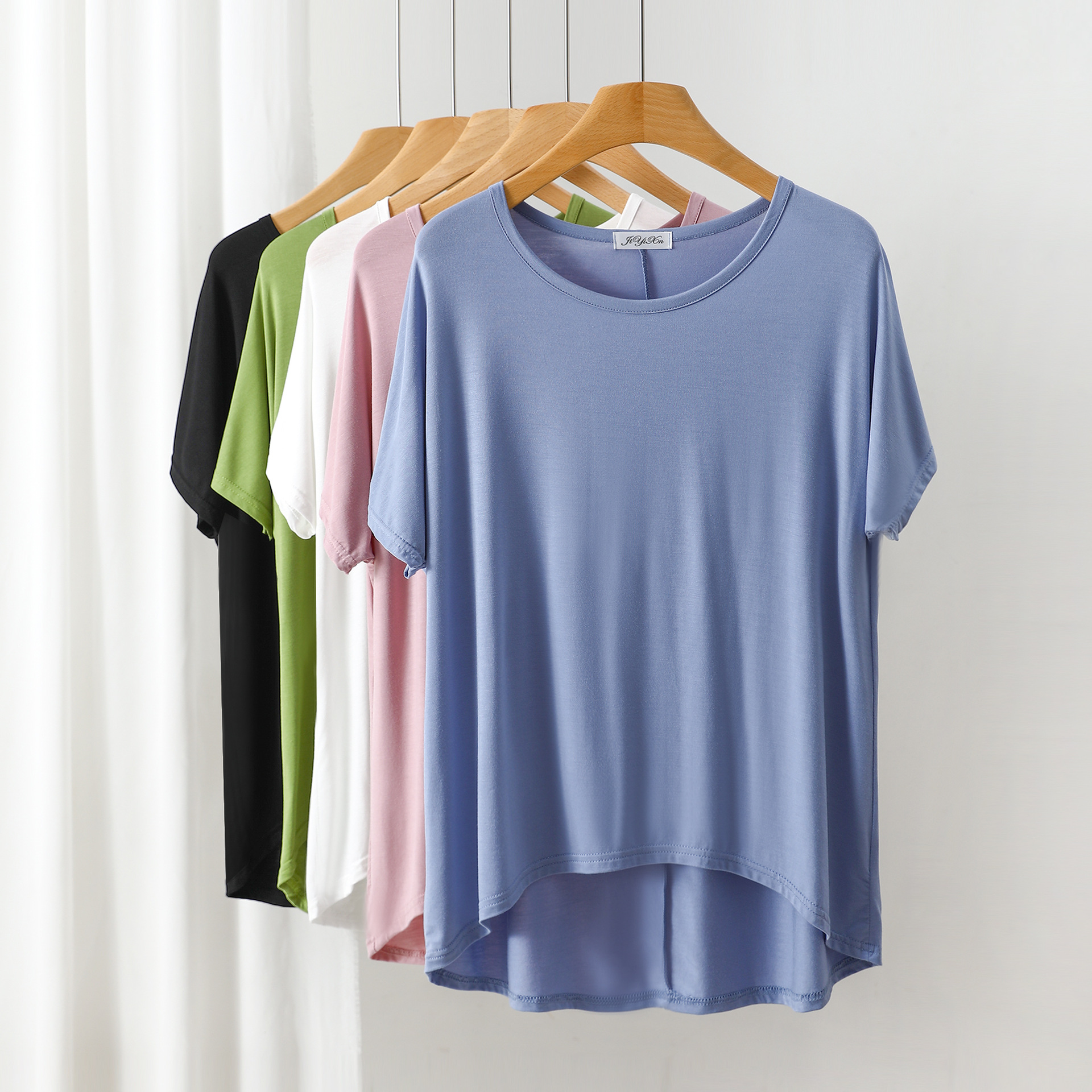 Kaus ukuran besar longgar pelangsing baru musim panas kaus model depan belakang pendek ukuran besar kemeja sayap kelelawar kemeja lengan pendek gadis gemuk