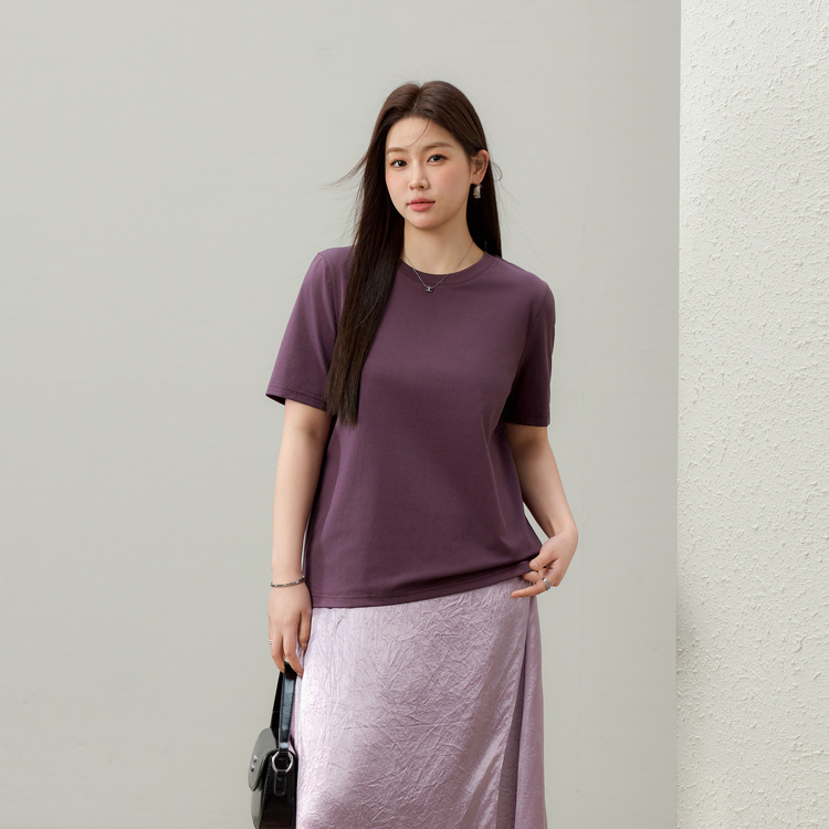 [T-Shirt Terlihat Ramping Mudah Dipadu Padan Kerah Bulat Warna Polos Dasar] Pakaian Wanita Gemuk Ukuran Besar Pakaian Musim Panas Model Baru