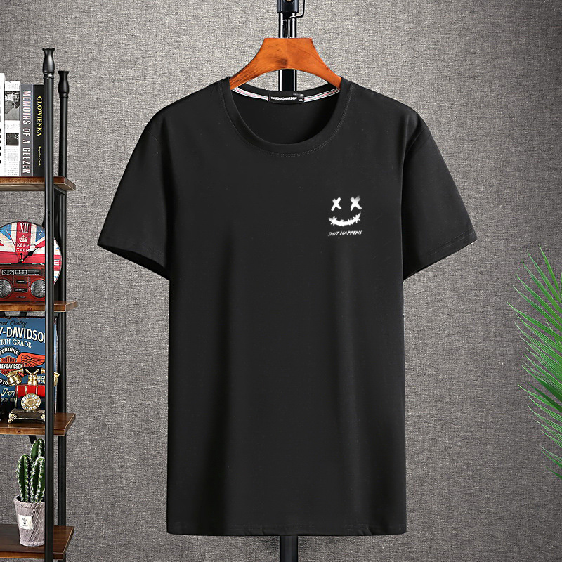 Kaus pasangan katun putih cantik lengan pendek antiair antifouling Ukuran besar kaus hitam cetak teknologi Slim fit nano T