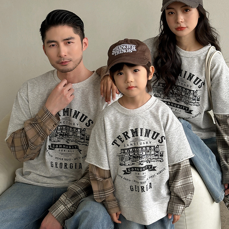 Jaket Atasan Palsu Dua Potong Palsu Sweatshirt Lengan Panjang Pola Kotak Asimetris Sambungan Kepribadian