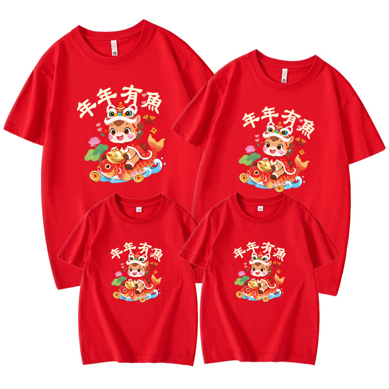 批发本命年生肖亲子装短袖一家三四口全家装红色马年元旦活动T恤