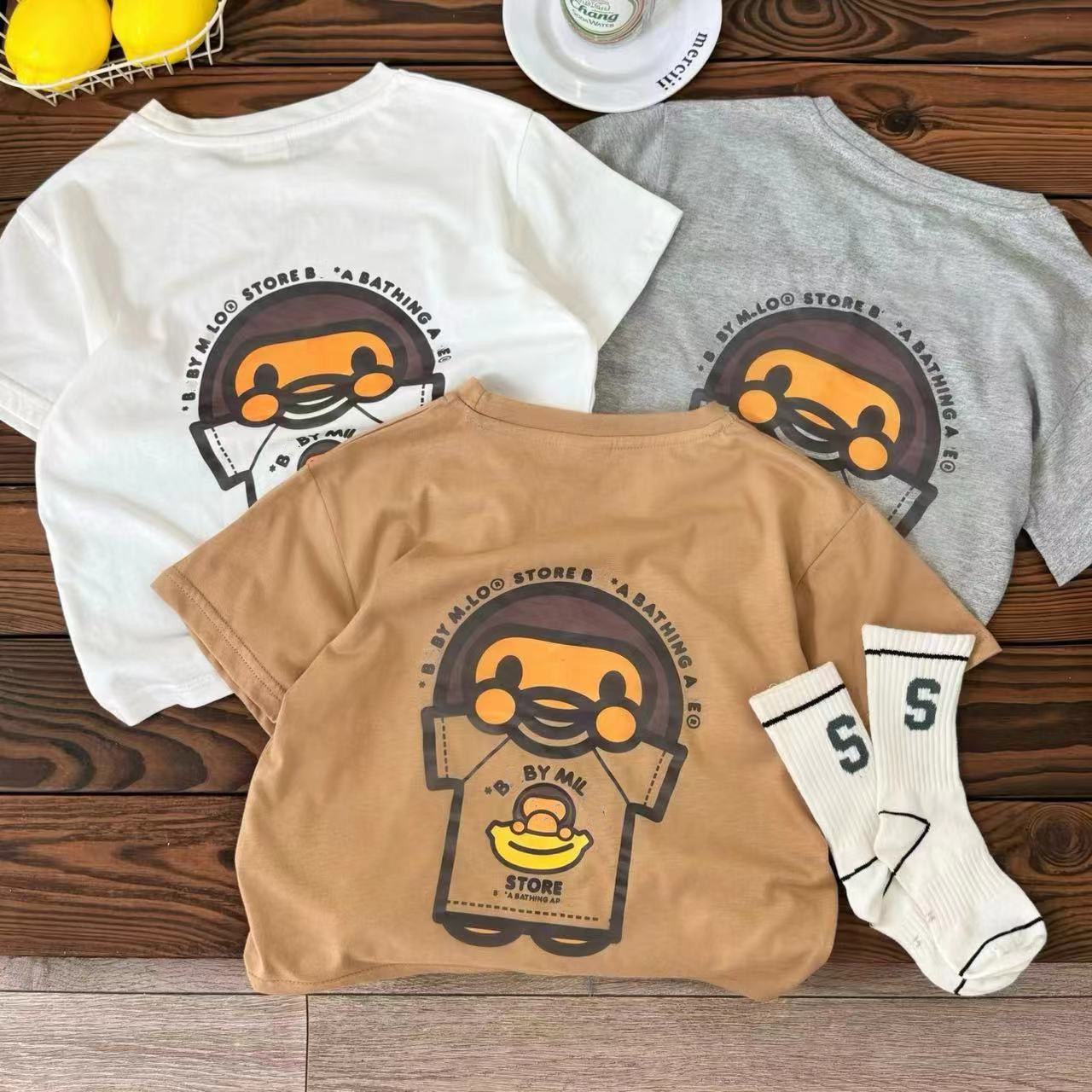 T-Shirt Lengan Pendek Anak-anak Musim Panas Produk Baru Monyet Pisang Baju Atasan Lengan Setengah Motif Cetak T-Shirt Anak dan Anak Laki-laki Trendi Satu Potong Rambut