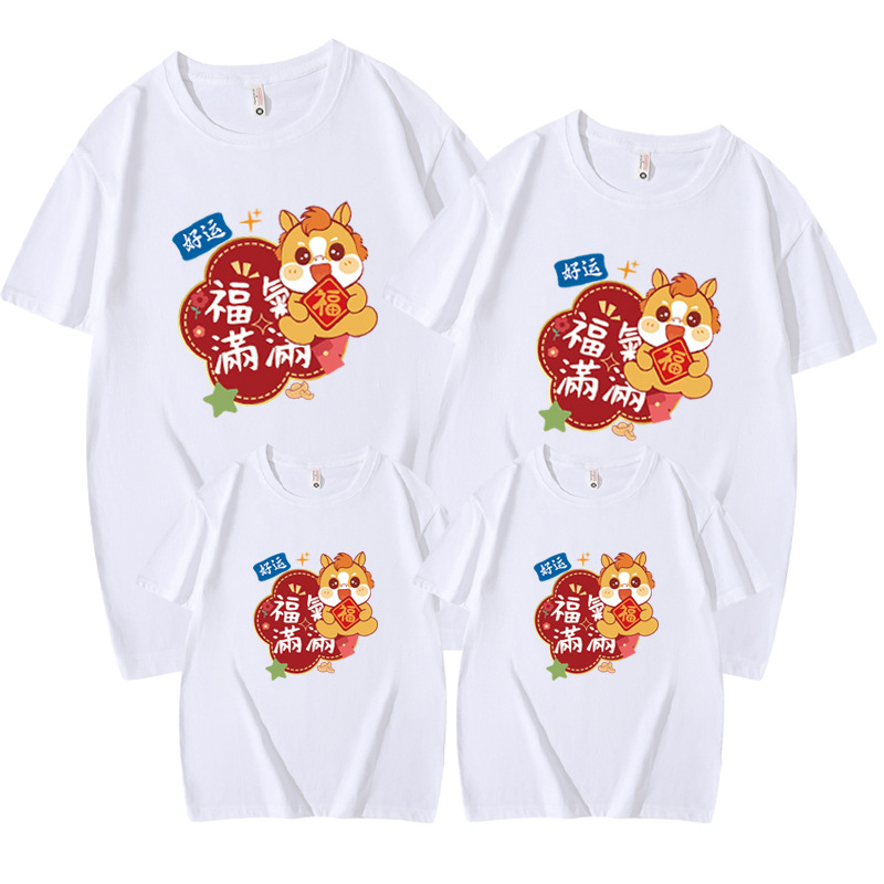 批发本命年生肖福马t恤一家三口全家服装元旦活动亲子装过年短袖