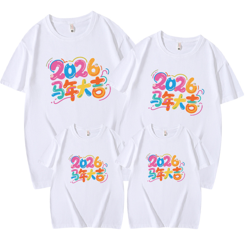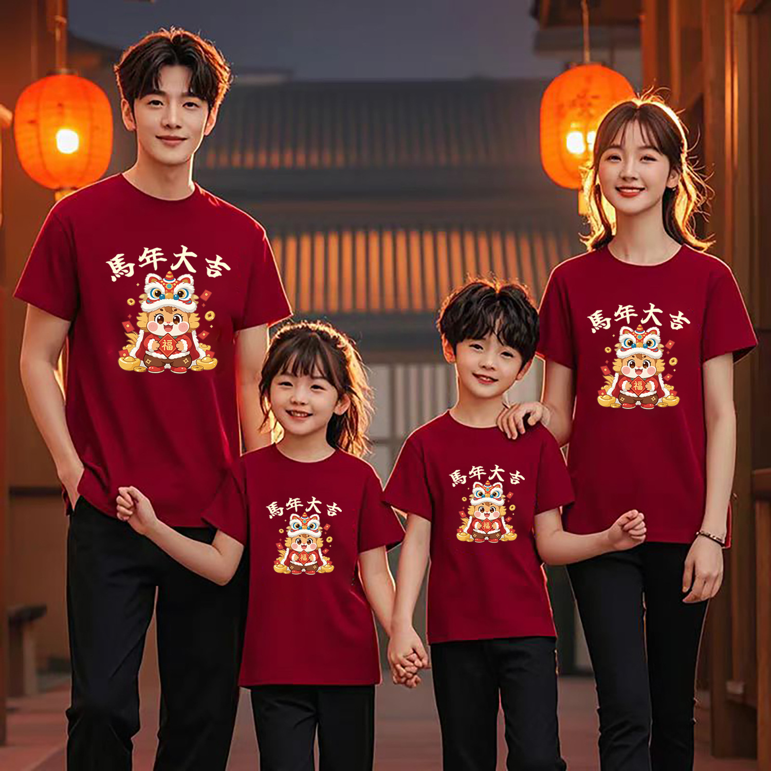批发2026本命年t恤一家三口四口全家新年元旦活动马年亲子装短袖