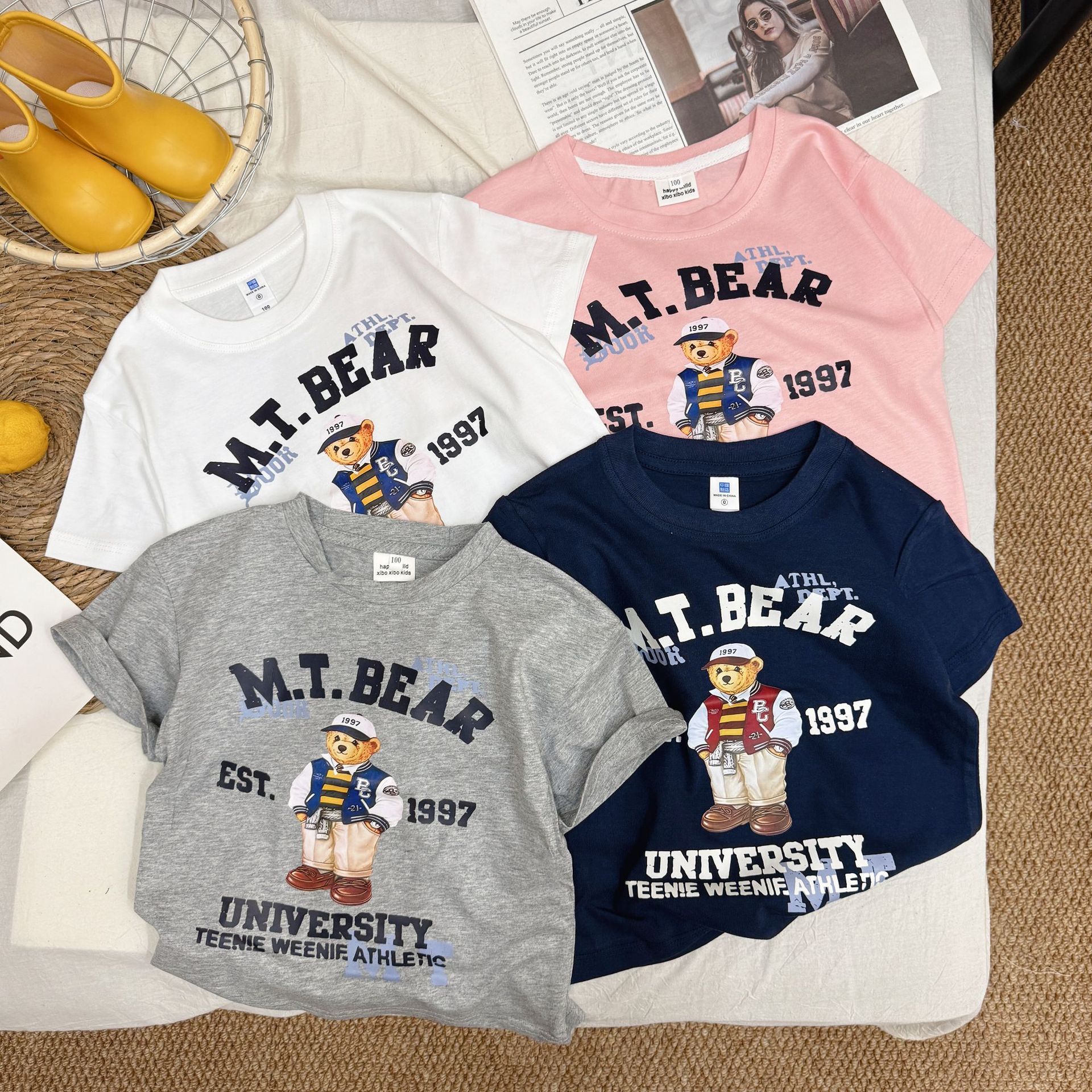 Pakaian Anak-anak Gaya Korea T-shirt Lengan Pendek Anak-anak Model Baru Musim Panas Pakaian Beruang Kecil Kartun Bayi Perempuan Atasan Pasokan Lintas Batas