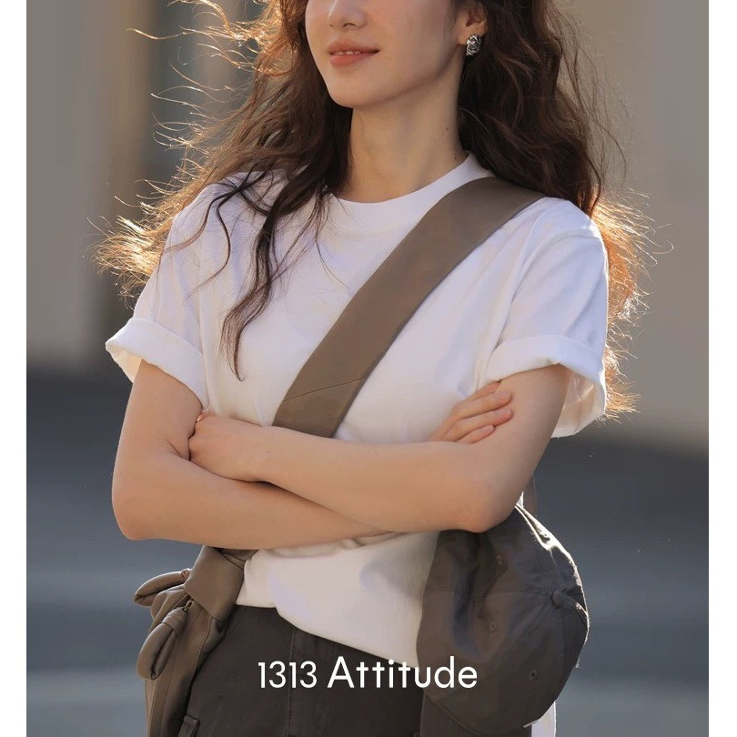 [Spot] 1313 Rekomendasi berat! Kaos Wanita Lengan Pendek Warna Solid Katun Murni Dasar Warna Putih Mudah Dipadu Padan