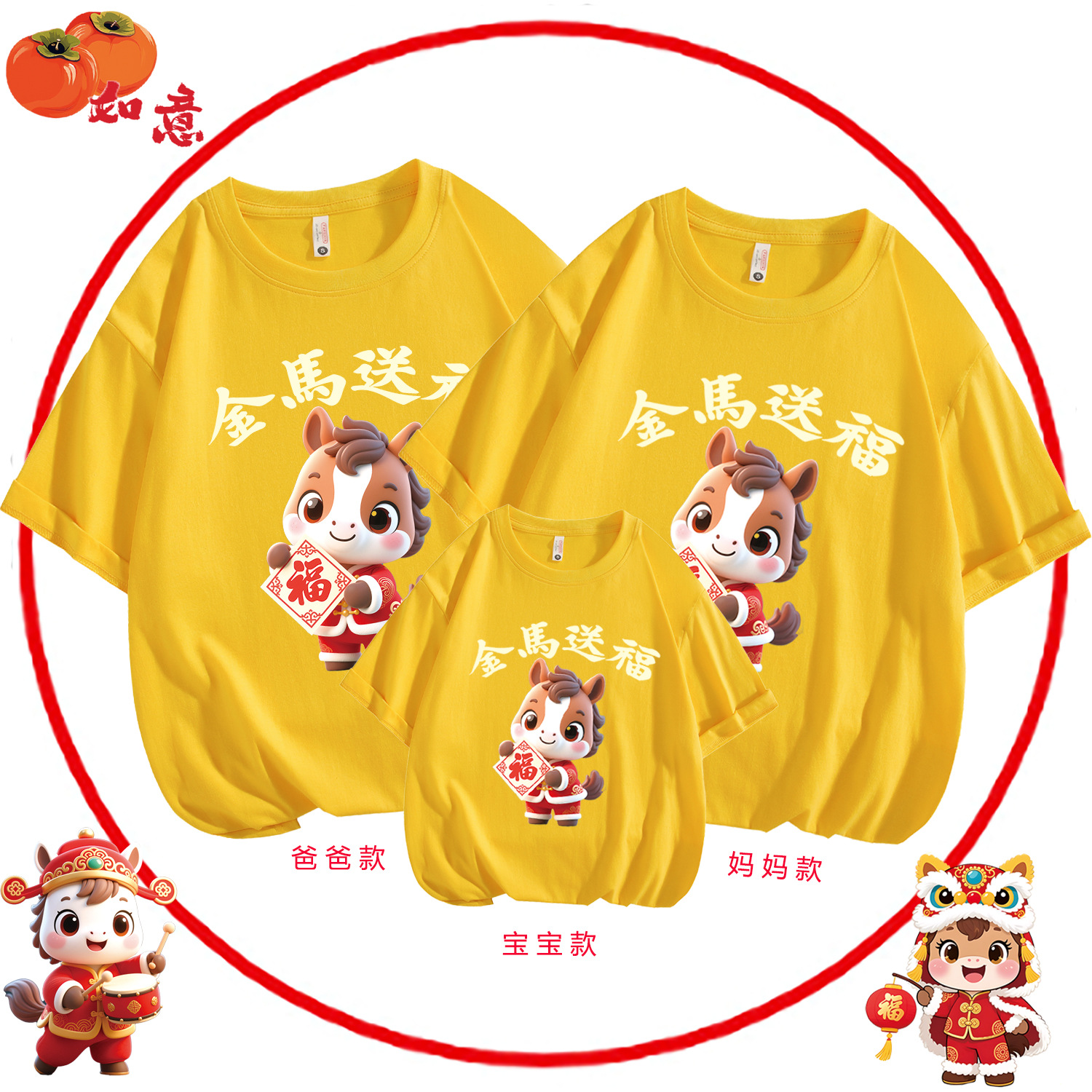 2026年马年本命年一家三四口亲子装短袖t恤喜庆男女新年全家半袖