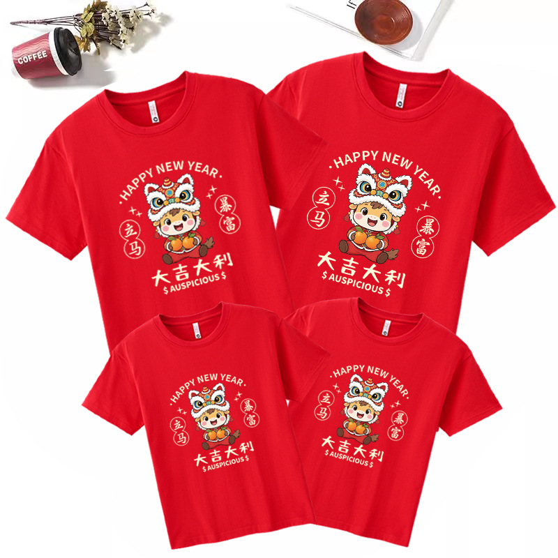 批发本命年生肖亲子装短袖一家三四口全家装红色马年元旦活动T恤