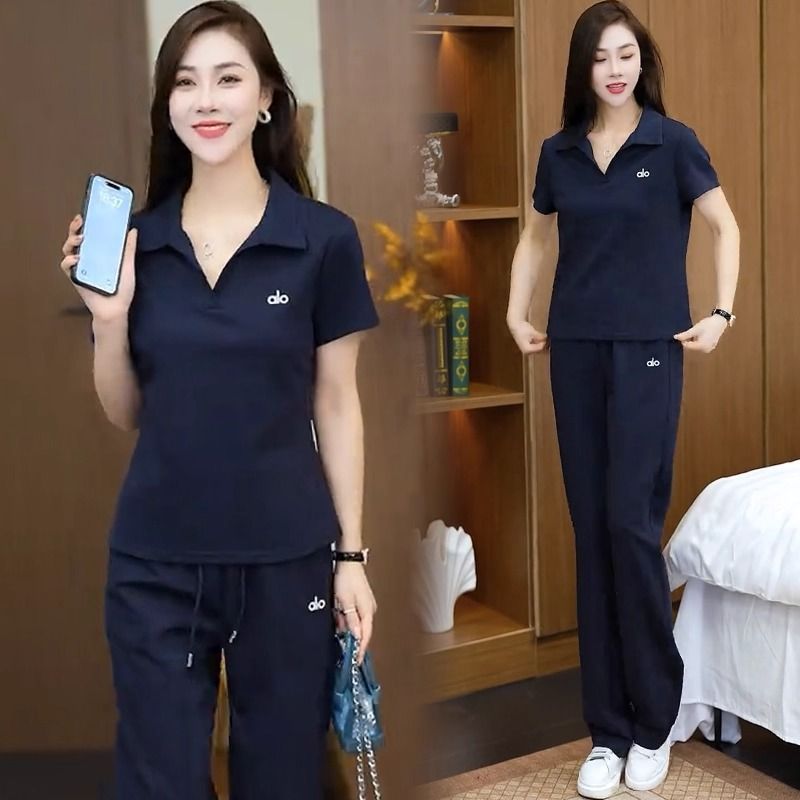 时尚休闲运动套装女夏季薄款2025新款POLO领短袖长裤两件套
