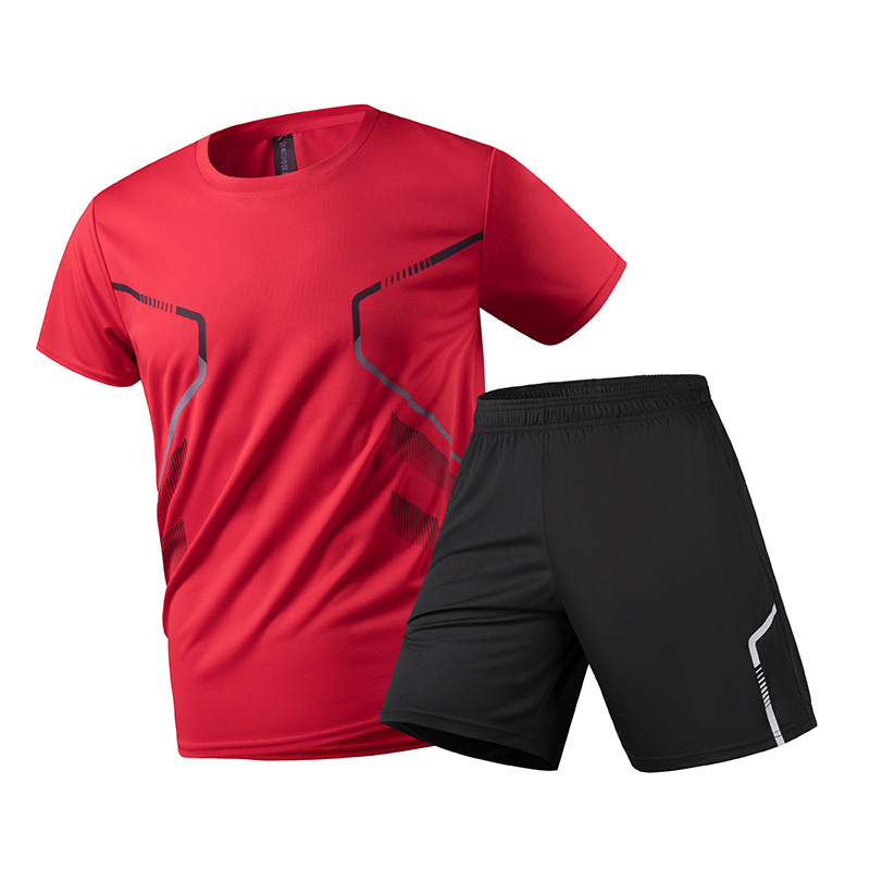 Setelan Ukuran Besar Lintas Batas Pria T-Shirt Cepat Kering Celana Pendek Olahraga Lengan Pendek Setelan Dua Potong Bernapas Elastis Kasual
