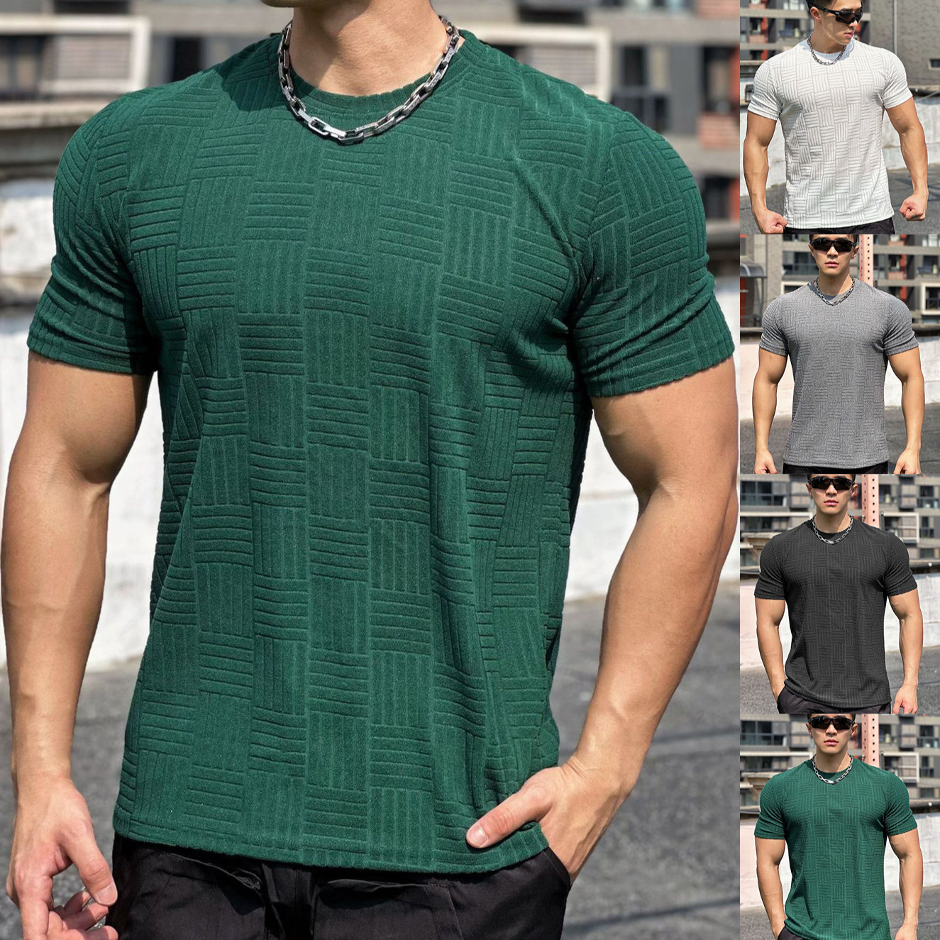 Kaus olahraga otot Amerika untuk pria, kaos basket lengan pendek semi-ketat, latihan lari musim gugur, kaus handuk olahraga untuk pria