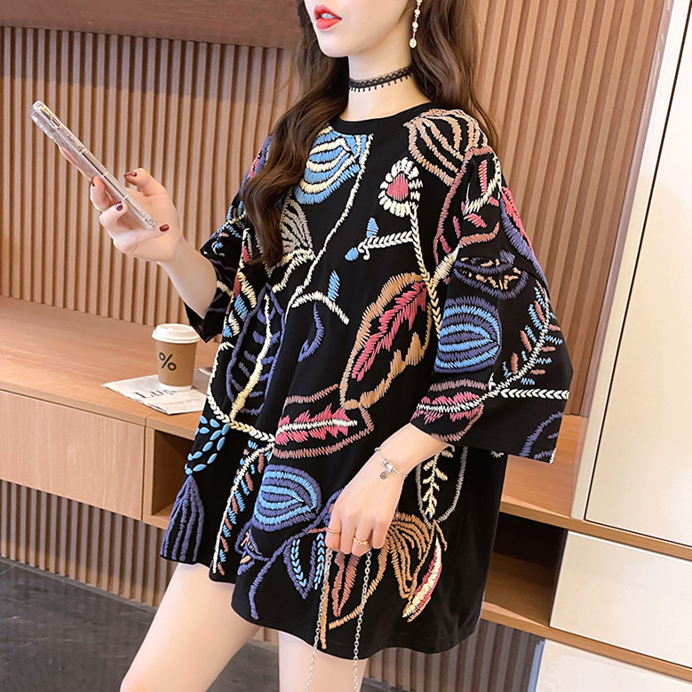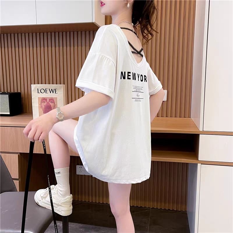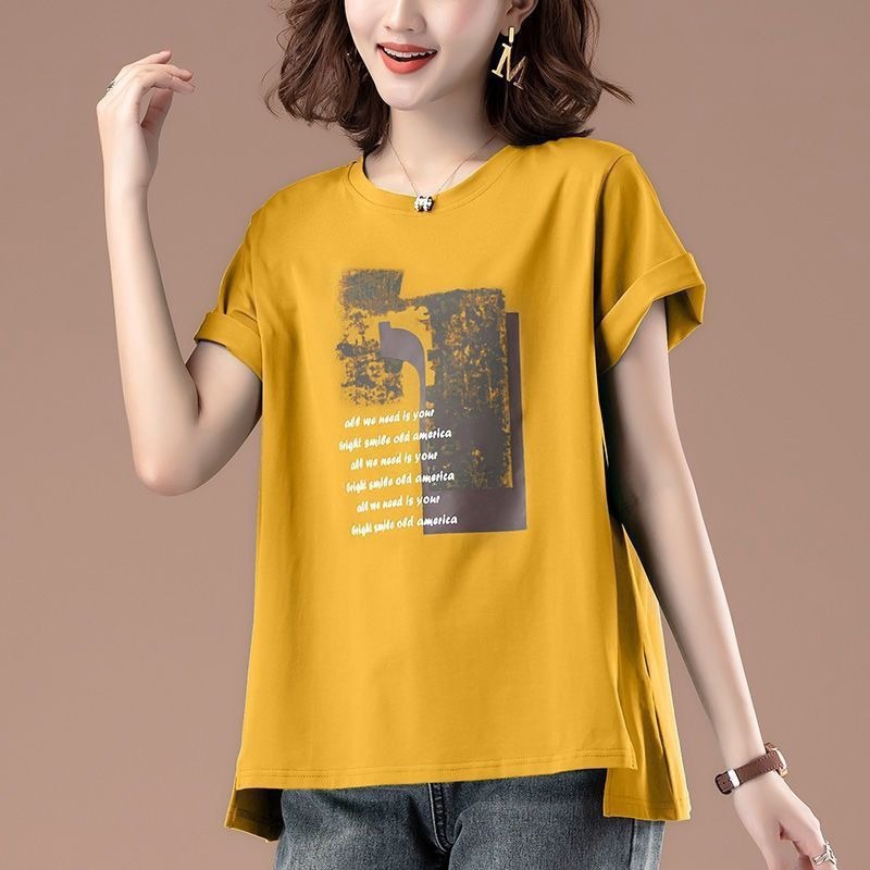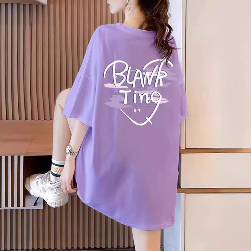 Kaus lengan pendek wanita, baju atasan ins versi besar Eropa bf longgar panjang setengah 2021
