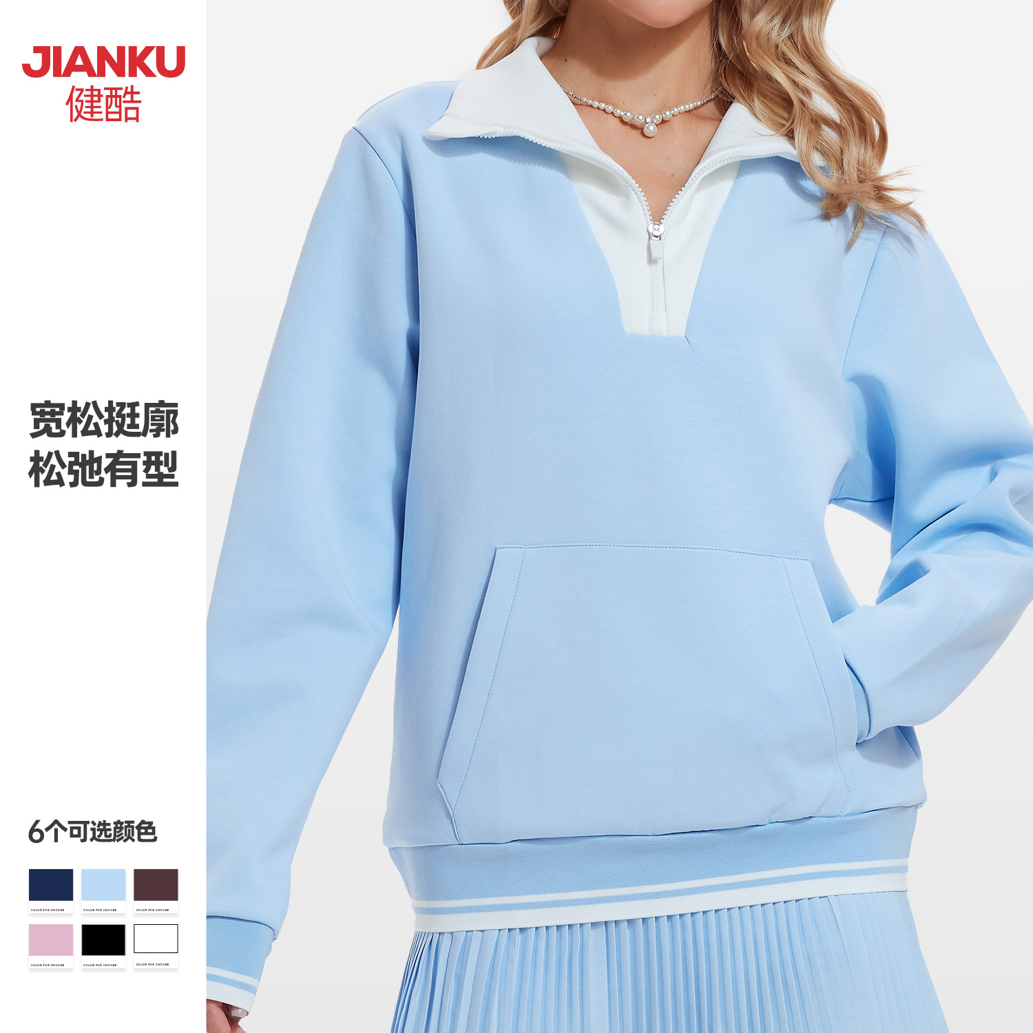 亚马逊跨境新款运动卫衣女撞色休闲瑜伽服长袖拉链健身服宽松卫衣