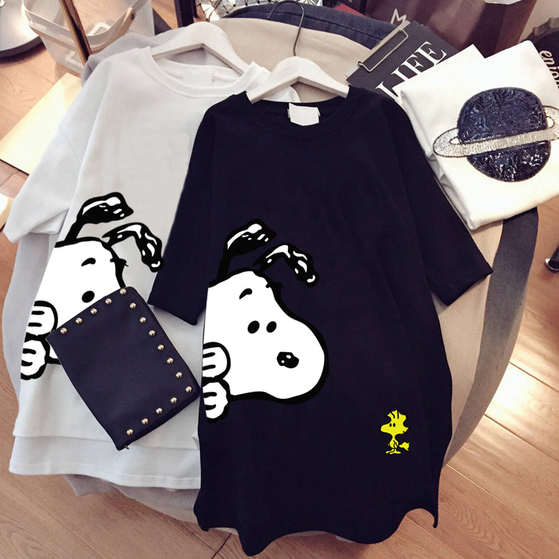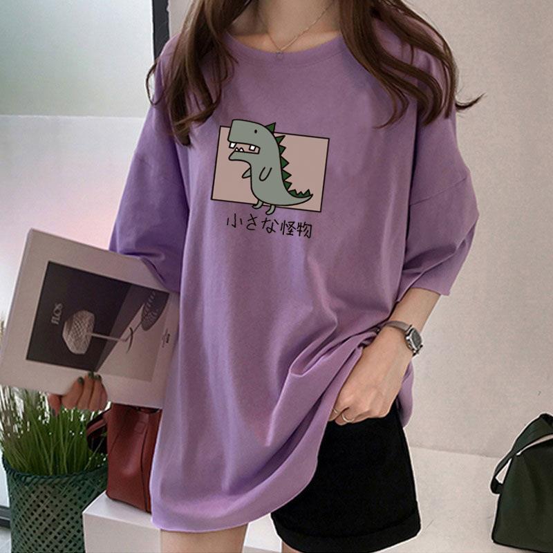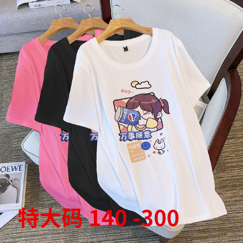 Kaus lengan pendek wanita, kaos lengan pendek bercetak kartun ukuran besar musim panas 507 #
