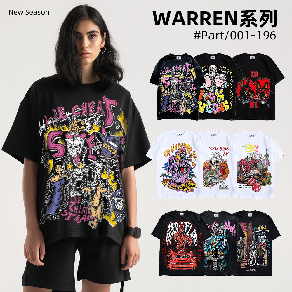 Kaos Lengan Pendek Model TEE Model Pasangan Kartun Kerah Bulat Ukuran Besar Bercorak Tinggi yang Dicat Tangan di Jalanan