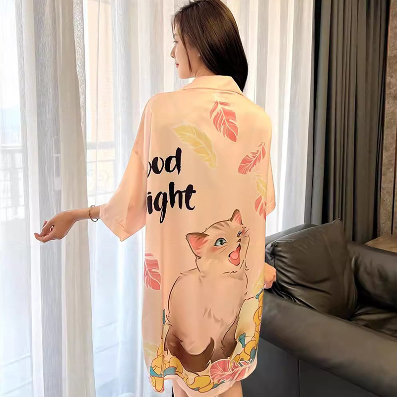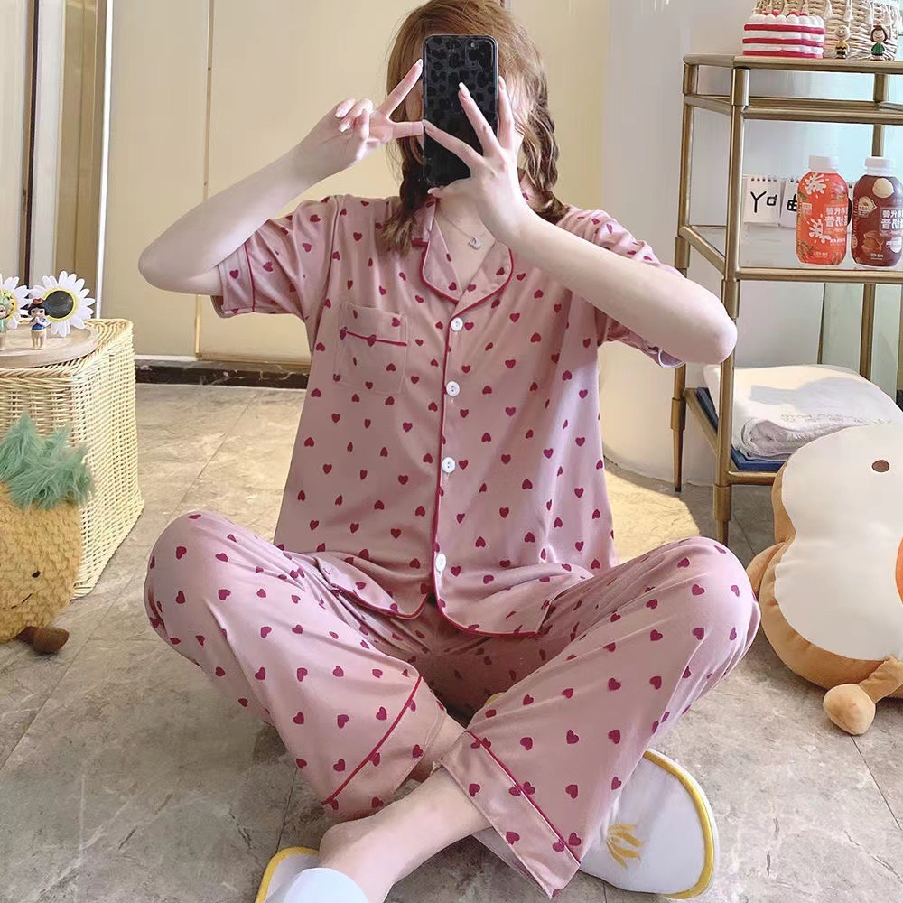 Baju Tidur Wanita Musim Semi Musim Panas 2024 Celana Panjang Lengan Pendek Instagram Model Baru Kardigan Kasual Longgar Pakaian Rumah Dapat Dipakai Luar Set