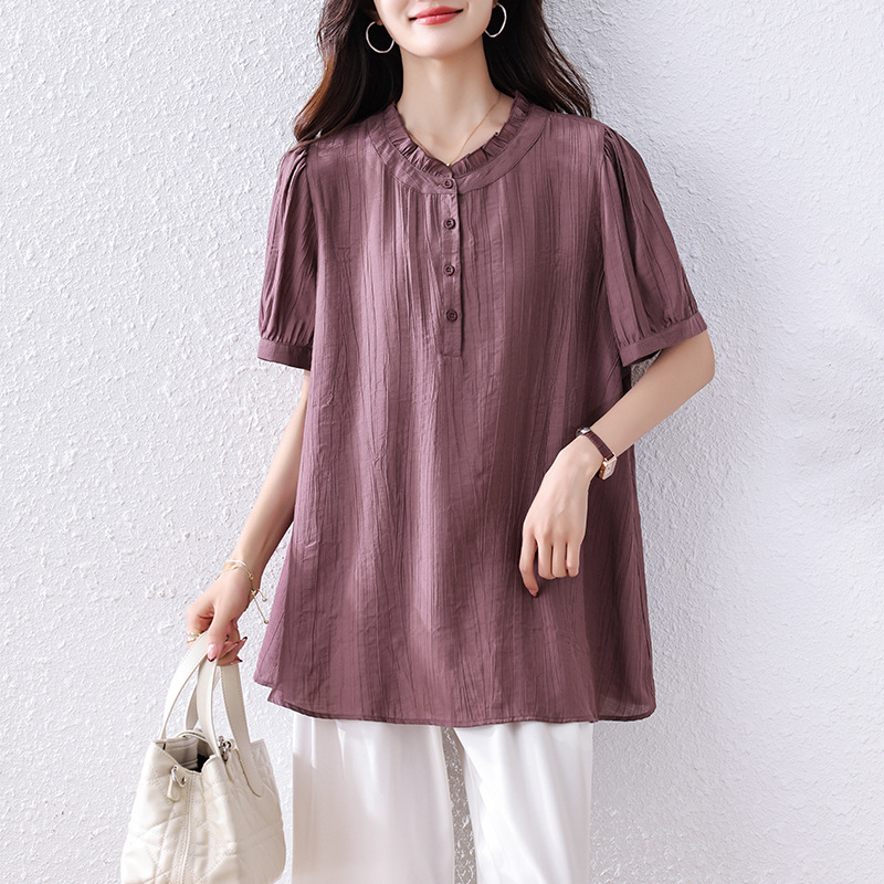 Kaus Lengan Pendek Katun Sutra Jacquard Musim Panas Pakaian Rumah Tangga Wanita Model Tipis Katun Imitasi Longgar Ukuran Besar Atasan Dalaman