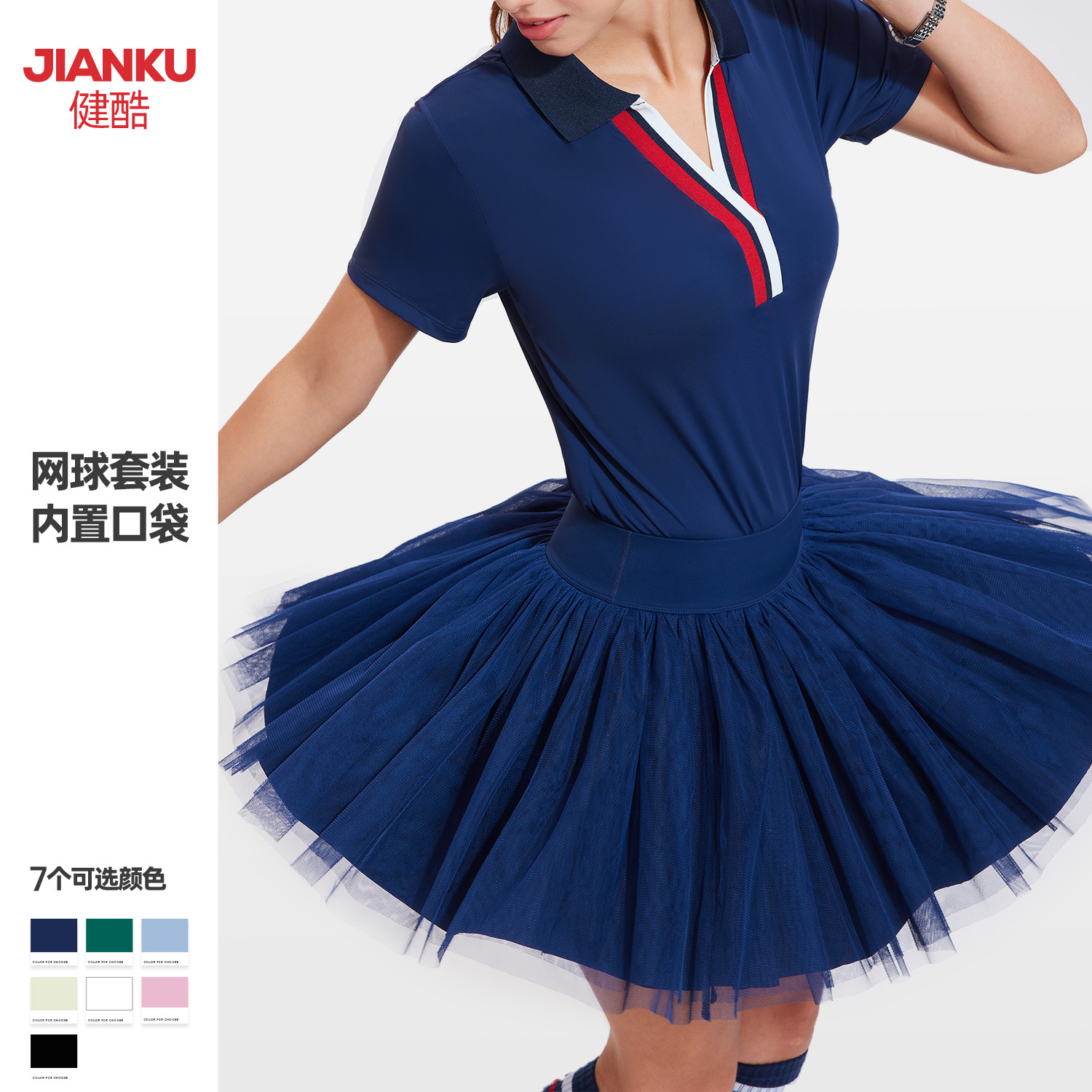 跨境新款网球服休闲套装女修身短袖Polo衫羽毛球健身速干运动套装