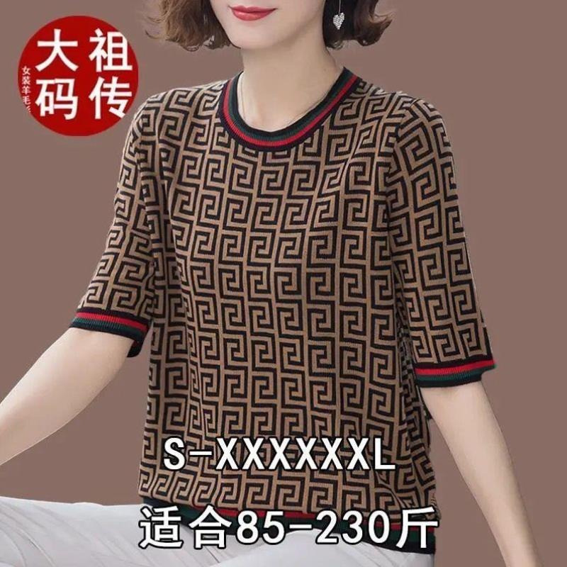 Kaus wanita ukuran plus untuk wanita, pakaian wanita ukuran plus Eropa dan Amerika 291396, kaus pullover motif leher bulat longgar, Kaus wanita paruh baya dan lansia