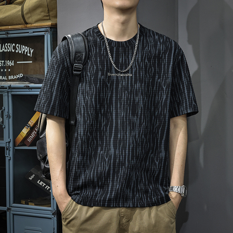 T-Shirt Lengan Pendek Gaya Retro Gaya Amerika T-Shirt Lengan Setengah Panjang Merek Trendi Jacquard Pola Tipis Musim Panas Ukuran Besar Longgar