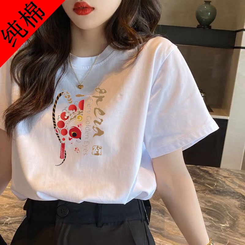 Atasan Kerah Bulat Kasual Modis Model Panjang Sedang Musim Panas Kaos Lengan Pendek Wanita Bersablon Terlihat Langsing Longgar Ukuran Besar Ukuran 300Kg