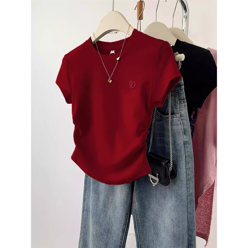 Kaus lengan pendek pelajar wanita, Atasan kemeja Dalaman ukuran besar putih murni Semua cocok musim panas ins populer Net merah 2023