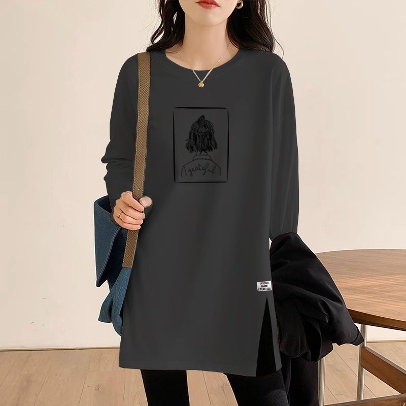T-shirt beludru hangat Semua cocok, Atasan kemeja lengan panjang longgar gaya Barat musim gugur dan musim dingin untuk wanita