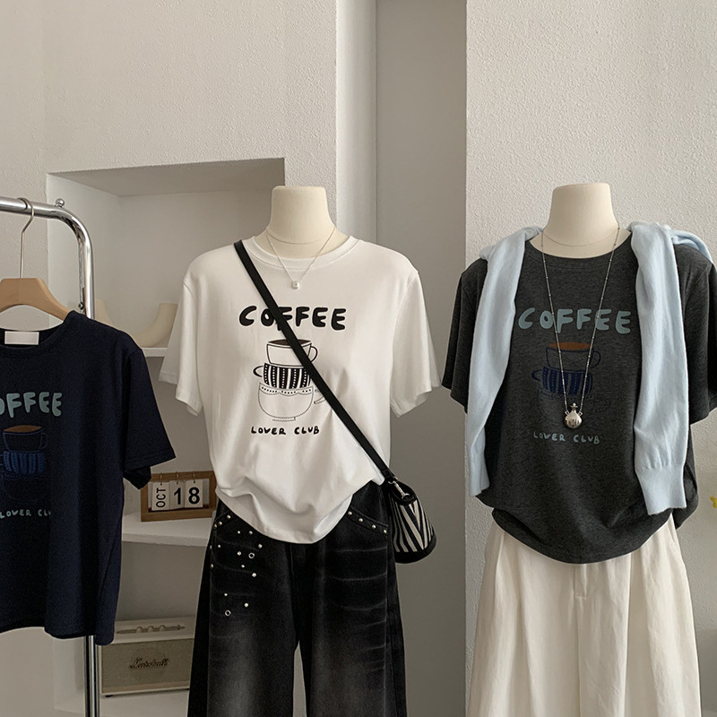 Kaus Lengan Pendek Dongdaemun Korea Tren Ins Wanita Pakaian Atasan Gaun Serbaguna Kartun Fashion Baru Musim Panas 2025